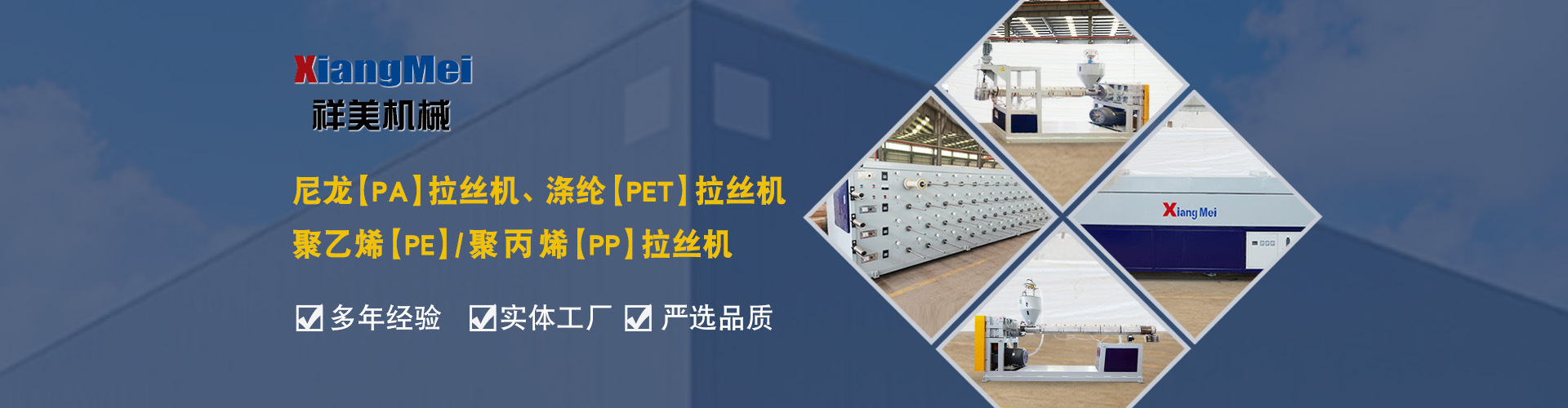 我公司是一家具有30多年專業(yè)生產(chǎn)塑料拉絲機(jī)的企業(yè),作為國內(nèi)最早生產(chǎn)圓絲塑料拉絲設(shè)備的企業(yè),成為國內(nèi)同行競相爭仿的標(biāo)桿,公司產(chǎn)品主要可以生產(chǎn)聚乙烯(PE)、尼龍(PA)、聚丙烯(PP)、滌綸(PET)等作原料拉絲機(jī)設(shè)備及其配套設(shè)備、鉛芯機(jī)設(shè)備及其配套設(shè)備,拉絲機(jī)設(shè)備主要生產(chǎn)的產(chǎn)品有單絲、復(fù)絲、扁絲、刷絲、草坪絲、拉鏈絲、割草線等各類線絲,公司產(chǎn)品在國內(nèi)同行業(yè)中性價比高、有良好的口碑,曾獲“國家高新技術(shù)、新產(chǎn)品博覽會金獎”被輕工部定位替代進(jìn)口產(chǎn)品、國家級新產(chǎn)品,并多次獲得省、市科技進(jìn)步獎,產(chǎn)品遍布全國大部分地區(qū),并遠(yuǎn)銷日本、意大利、俄羅斯、韓國、印度、澳大利亞、印度尼西亞、墨西哥、菲律賓、泰國、朝鮮、巴基斯坦、烏茲別克斯坦、越南、馬來西亞、老撾、越南、坦桑尼亞等國家和地區(qū)。 公司實行現(xiàn)代化企業(yè)管理,始終秉承以科技為先導(dǎo),制造為基礎(chǔ),管理為核心的企業(yè)面貌,運(yùn)用先進(jìn)的生產(chǎn)設(shè)備,創(chuàng)新的思維理念,確保產(chǎn)品多樣化、系列化,高品質(zhì),把誠信、責(zé)任、創(chuàng)新作為祥美人不斷的追求的目標(biāo),為新老客戶打造高品質(zhì)的拉絲設(shè)備。 公司位于黃海之濱、亞歐大陸橋東橋頭堡的海濱城市——連云港,這有海陸空便捷的交通網(wǎng)絡(luò)、風(fēng)景秀麗的山海風(fēng)光,總經(jīng)理江中堯先生攜公司全體員工竭誠歡迎各界人士、中外新老客戶來連洽談業(yè)務(wù)。
